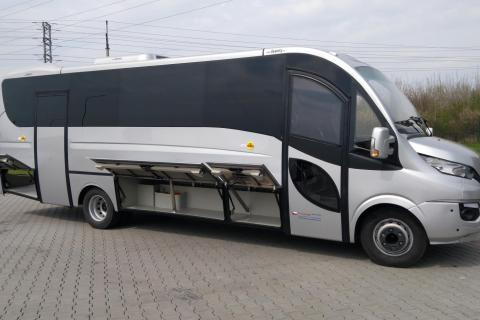 Jeden z novějších minibusů je Iveco Dyparro 90 T. Může se pyšnit rokem výroby 2019 a luxusním interiérem.